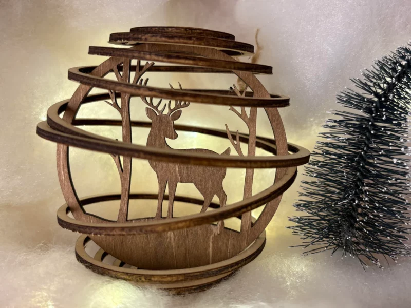 Découpée avec finesse Au p’tit de Sophie, et assemblée soigneusement à la main, cette boule ajourée dévoile un majestueux cerf au cœur de la forêt 🌳