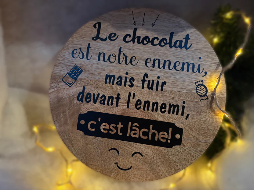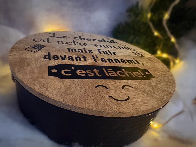 Couvercle en bois avec écriture collée