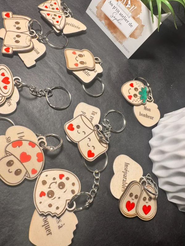 Ces mini porte-clés de 3 cm cachent des mots doux, des private jokes, des petites phrases qui font sourire, rire ou fondre instantanément.