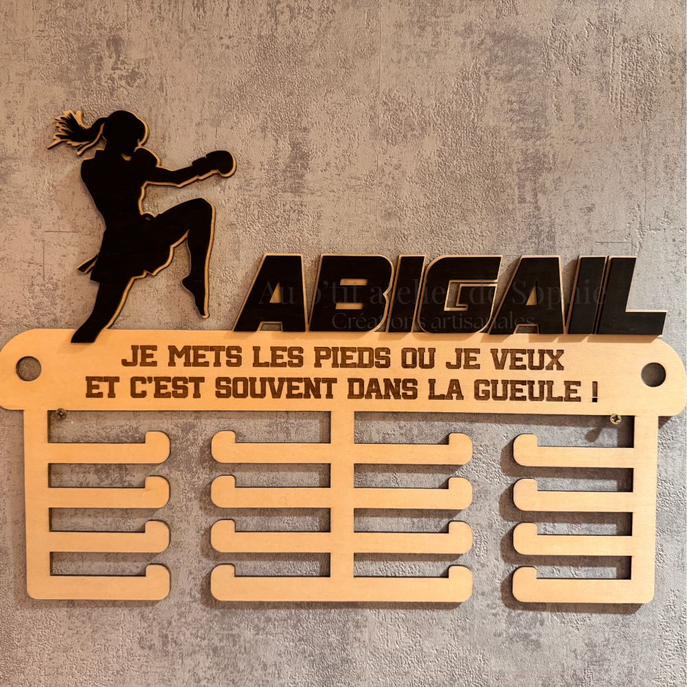 Découpé au laser, assemblé avec soin, et pensé pour mettre en valeur chaque médaille gagnée à la sueur (et parfois aux courbatures) 😅